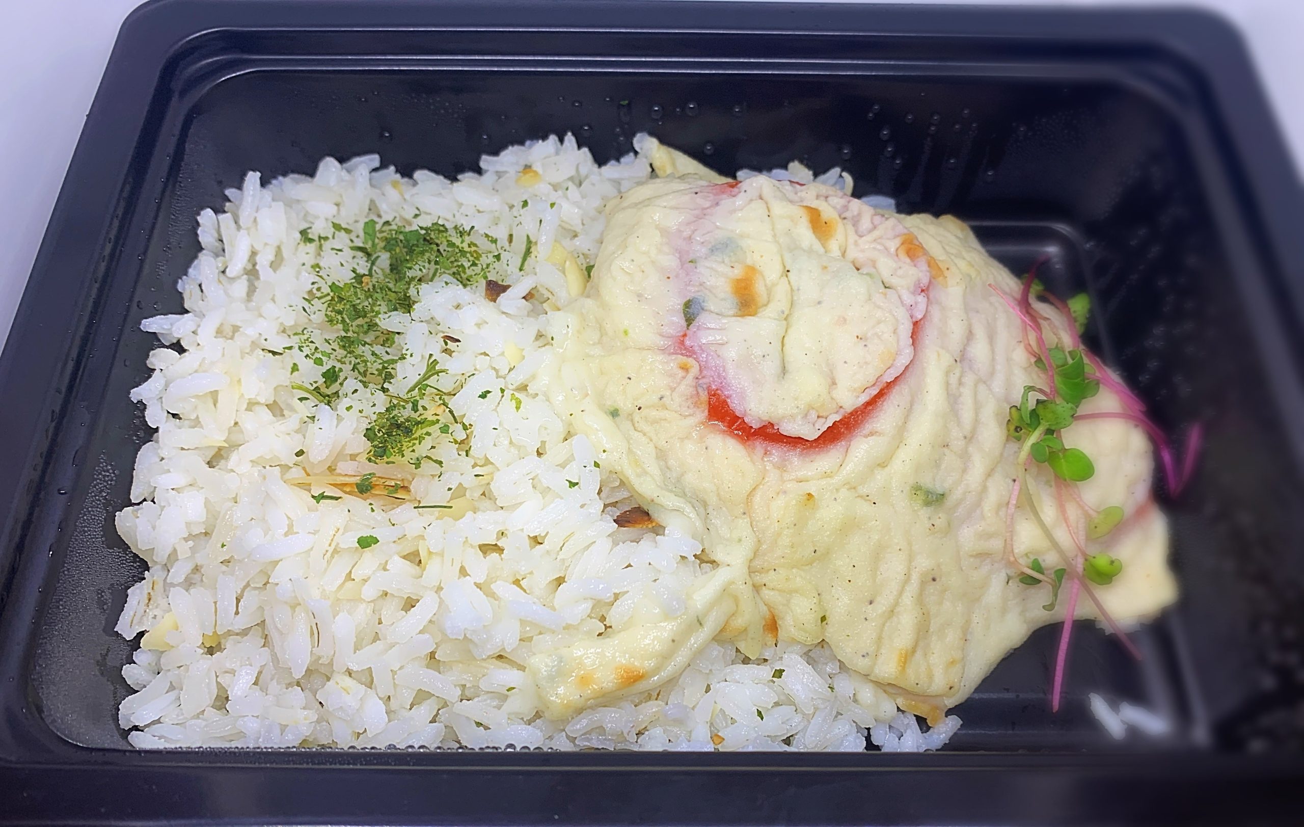 Paradicsomos csőben sült csirkemell pirított mandulás jázmin rizzsel